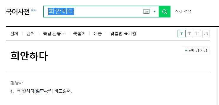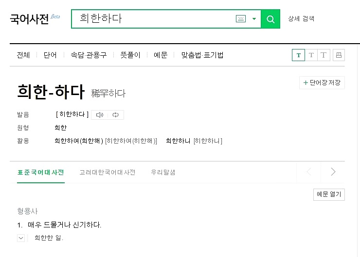 이번엔 [희한하다]를 검색해 본 결과예요.